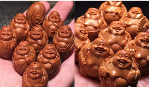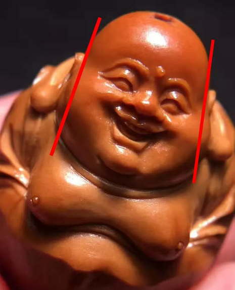 第三步,看开脸。除了弥勒讲究的对称之外。眼窝还要雕刻地深一点,鼻子两旁肌肉也要突起,而且下巴的肉要厚,但是又不能平,不能短。这样的弥勒看起来才更为富态圆润。