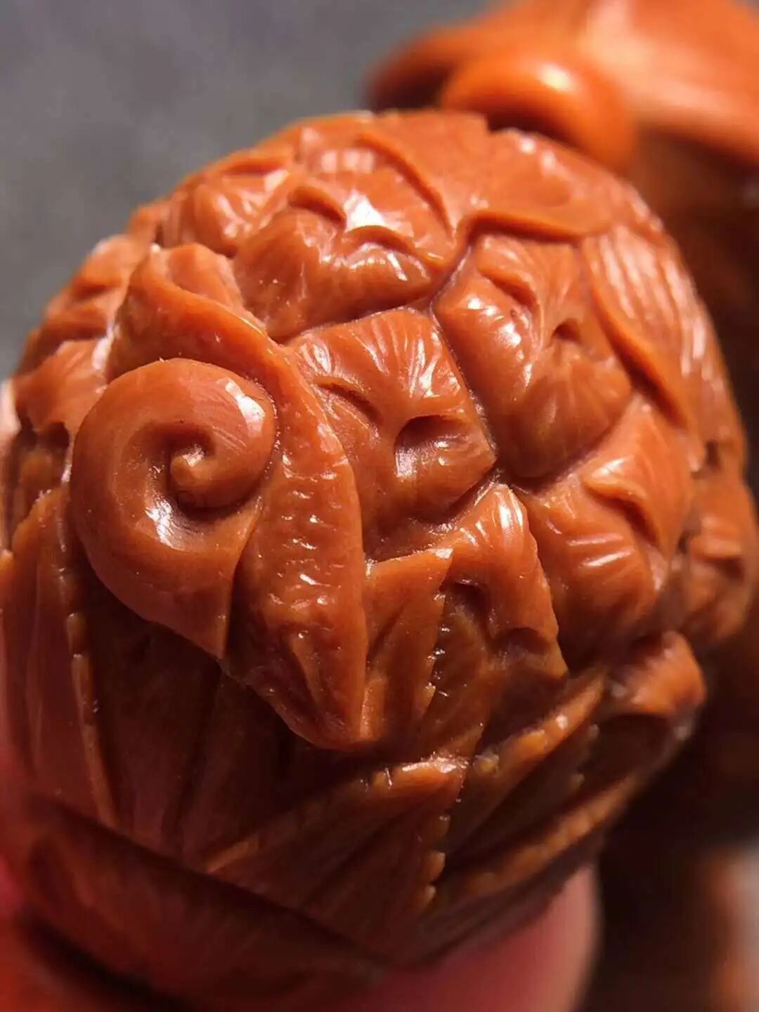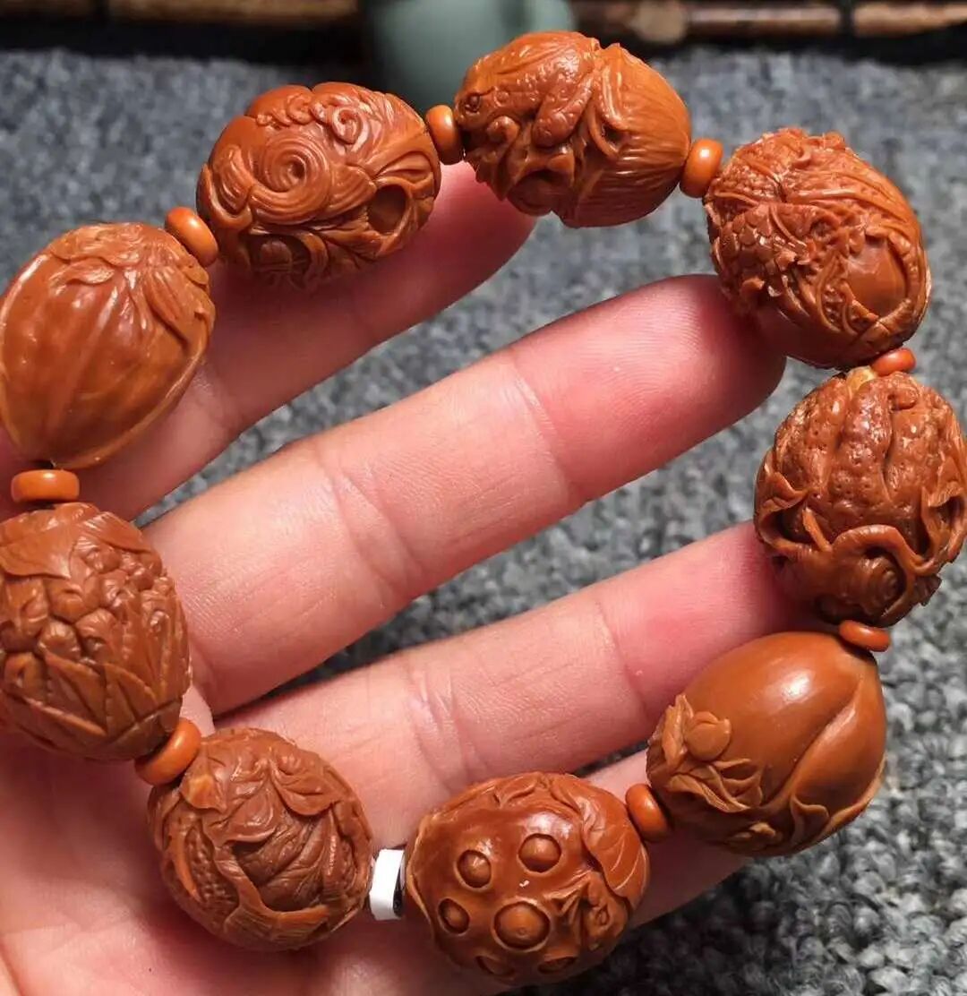 选用百年老铁核雕刻,非常短圆的核,纯手工,八款植物做工精细,栩栩如生。