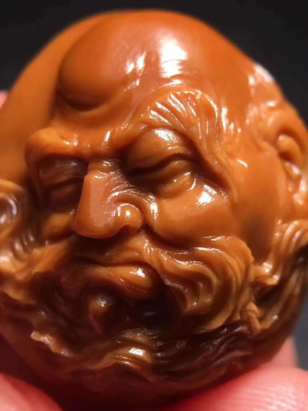 上面细节图可以看出做工了得,人物脸部肌肉雕刻的很细腻。人物表情生动,神态逼真,胡须飘逸厚实。细节处理很到位!大师作品不用多说,细细品,耐人寻味!